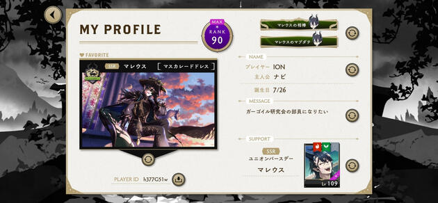 Playing since launch. My heart has once again been captured by the androgynous robot and the eccentric artists. Limited friend slots, but all my supports are at Skill MAX+++! (Profile as of October 1, 2025)